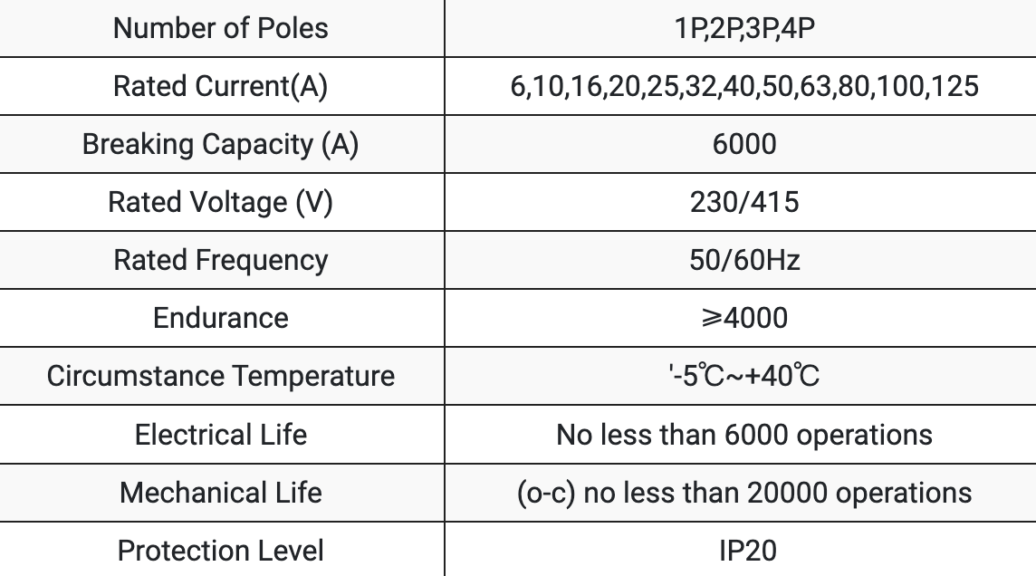 Lämpömagneettinen AC MCB | 1P-4P | 1-63a | B/C/D -käyrät | 415v | IEC/EN 60898-1