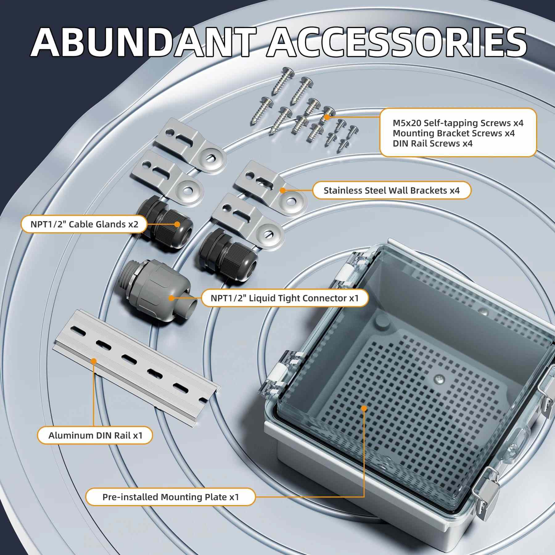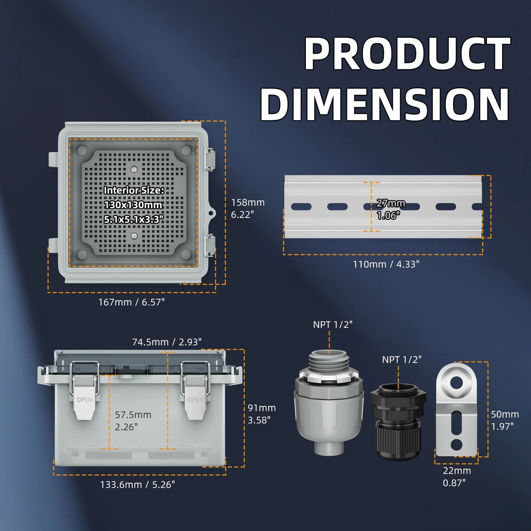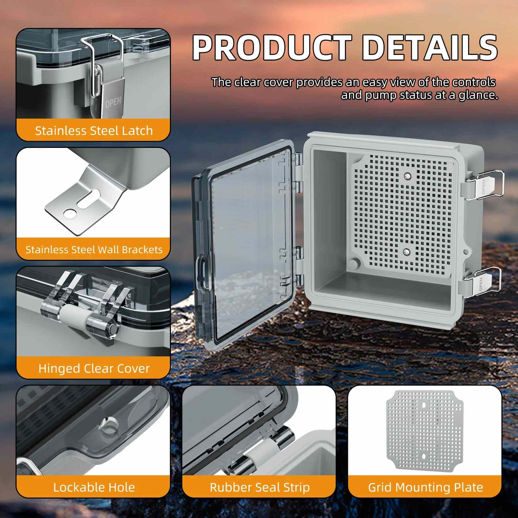 Laatikossa on vankka ruostumattomasta teräksestä valmistettu salpa turvallisen sulkeutumisen ja pitkäaikaisen kestävyyden saavuttamiseksi, kun taas mukana oleva ura-alumiini-din-kisko yksinkertaistaa sähkökomponenttien, kuten kytkinten, releiden ja katkaisijoiden, asennusta. Korkealaatuisesta ABS-muovista rakennettu tämä kotelo ei vain kestä kovia ympäristötekijöitä, vaan myös ylläpitää vahvaa WiFi-signaalin suorituskykyä.
